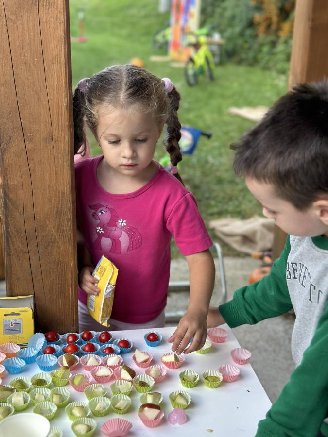 *zapojenie herničky do výstavy ovocia a zeleniny